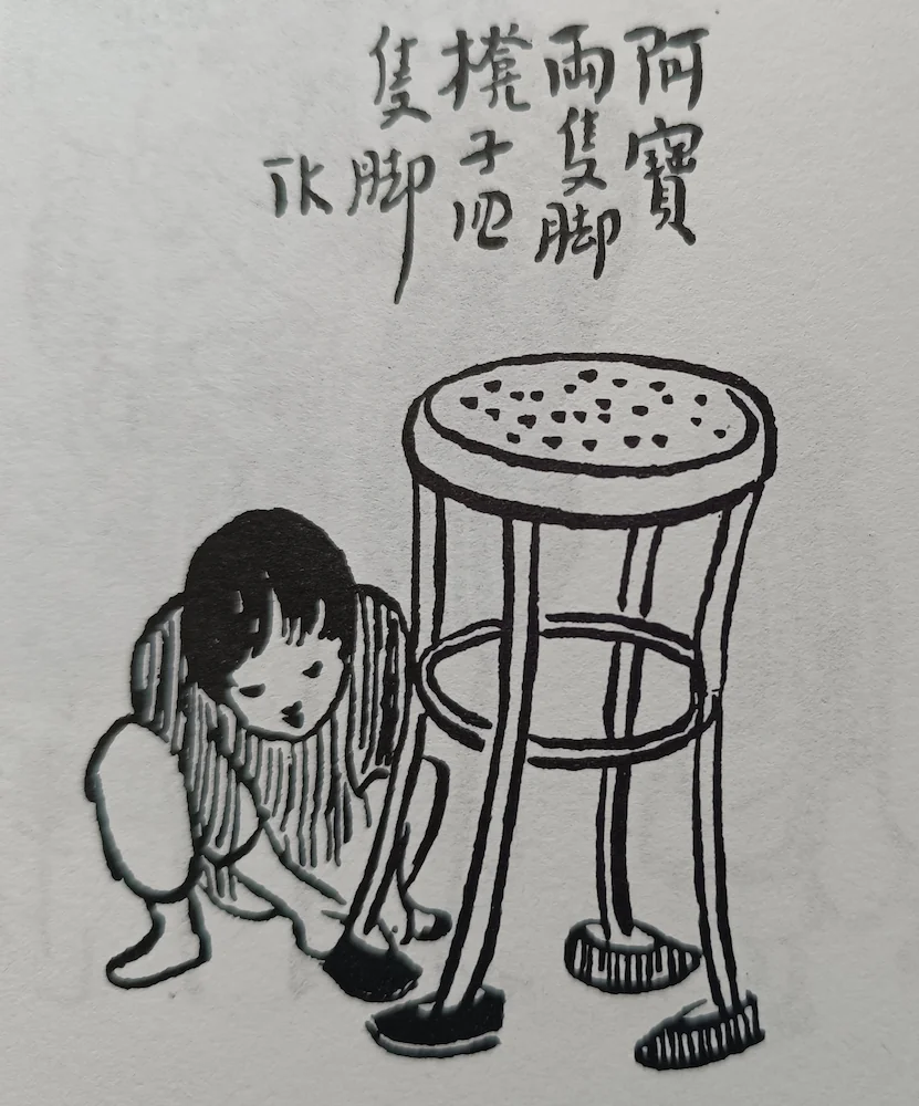 На рисунке написано «У Абао две ноги, у табурета четыре» (Источник: Feng Zikai 20101: 36)