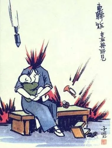 На рисунке написано «Бомбардировка; то, что видел в городе Цзясине» (Источник: Feng Zikai manhua)